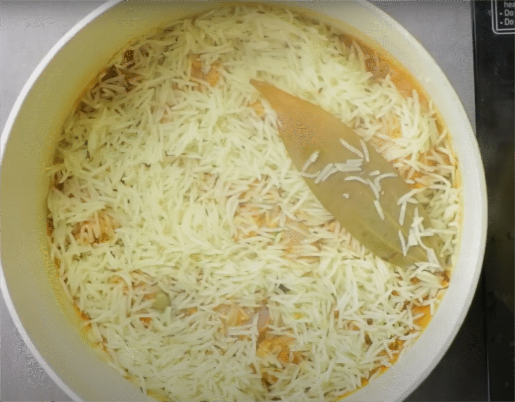 Biryani should by no means be blended at the same time as it is given. The range needs to be switched off and left like that for 20 minutes.